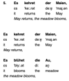 Es kehret der Maien, es blühet die Au' - 3 audio files | Normal + Slow speaking tempo, Word for word, IPA transcription and translation